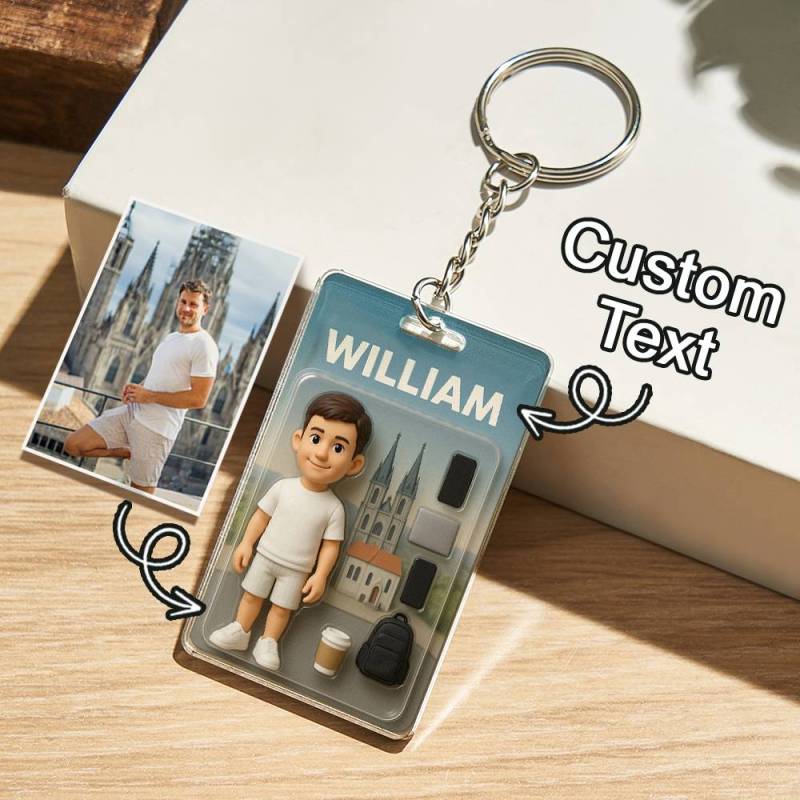 3D Effect Action Figure Pack Packaging Toy Box Style Art Gift Personalised Acrylic Keychain Gift for Dad Father's Day Gift