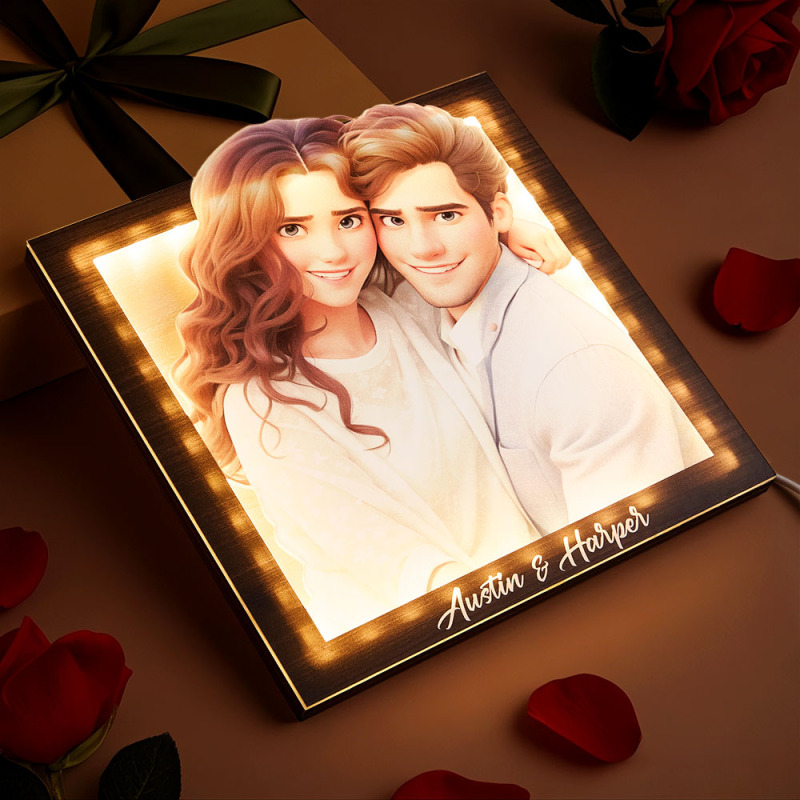 Birthday Day Gifts for Her Custom Cartoon Couple Photo Square Warm Light Photo Frame Lamp