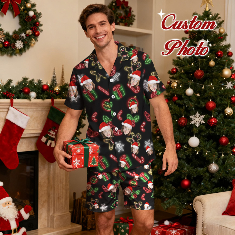 Custom Christmas Pajamas,Personalized Face Short Pajama Set for Men/Women,Custom Pyjamas with Photo,Couple PJs,Christmas Gift,Holiday