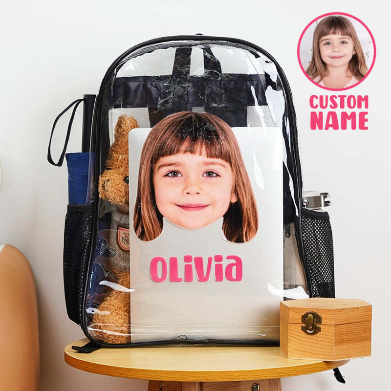 Personalized Back To School Face Photo and Name Backpack Transparent Bag
