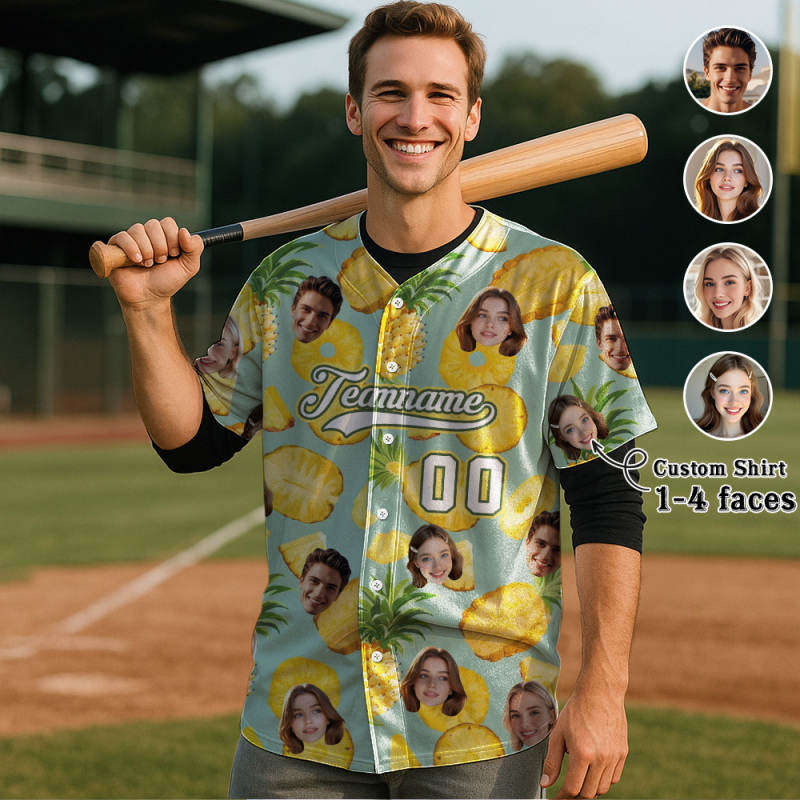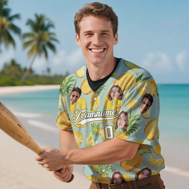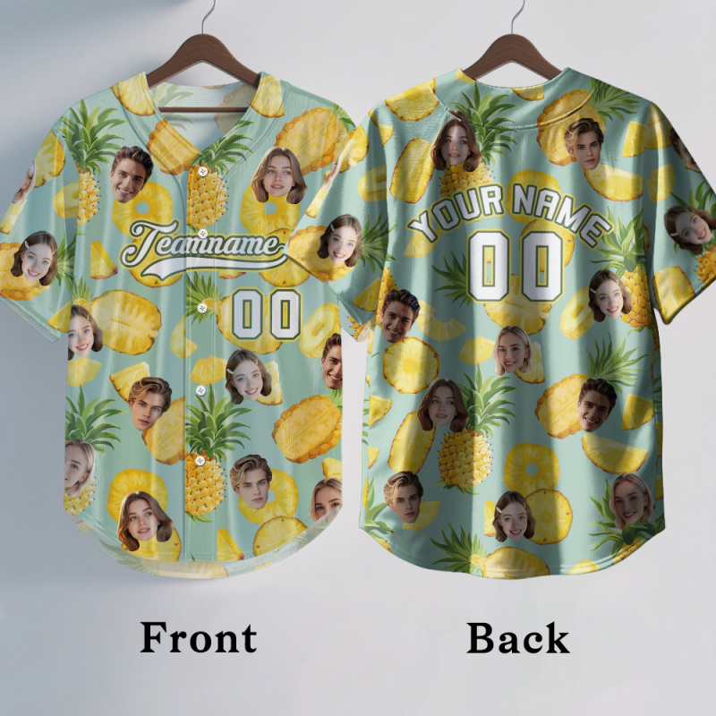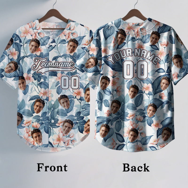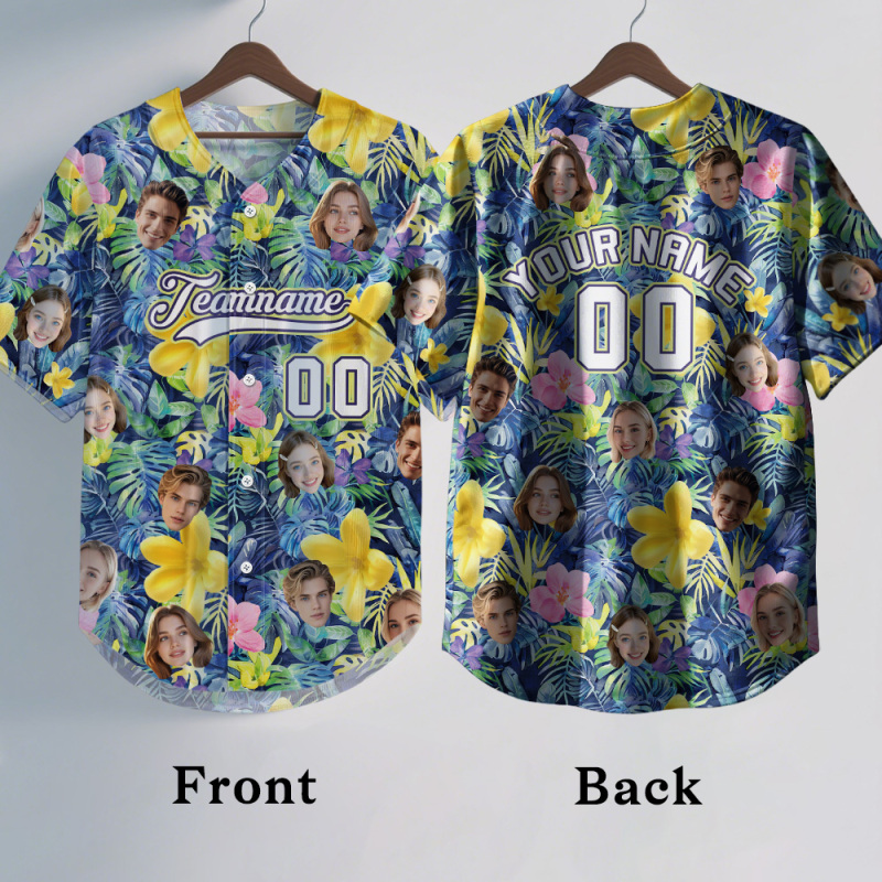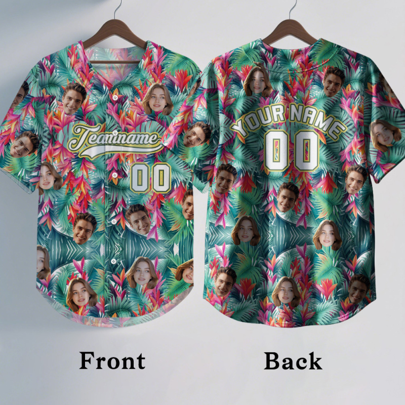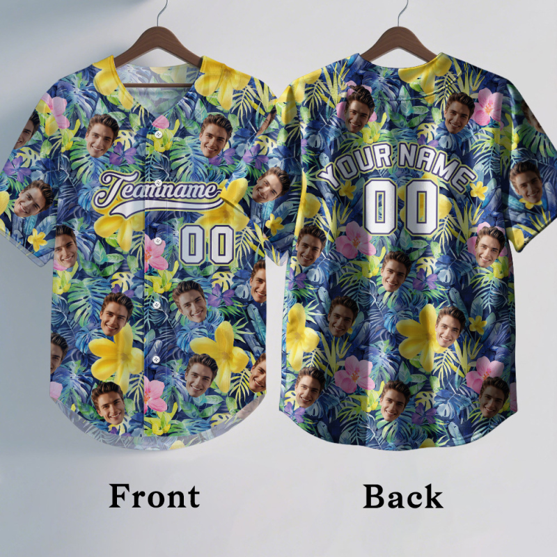Custom Hawaiian Baseball Jersey with Face Teamname Name Number Personalized Hawaii Floral Shirt for Men Women