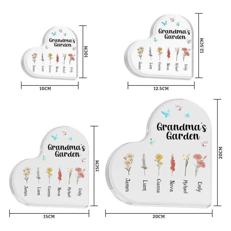 Custom Heart Shaped Acrylic Signs 1-6 Personalised Names Grandma's Garden Mother's Day Gift