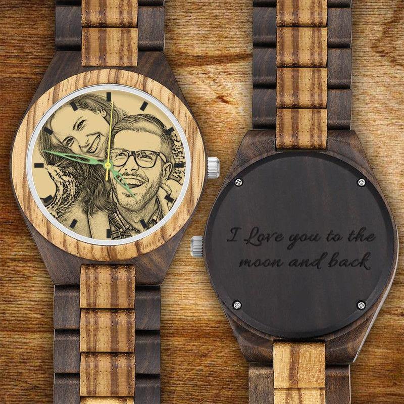 Men's Engraved Wooden Photo Watch Wooden Strap 45mm
