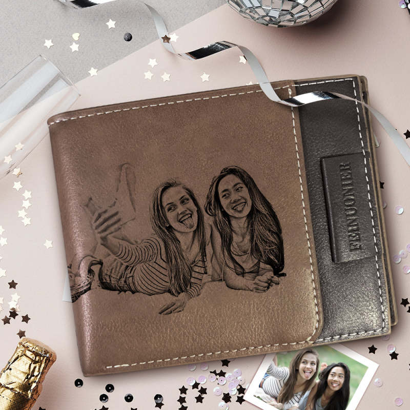Custom Men's Wallet With Photo RFID Blocking Wallet Brown For Friend