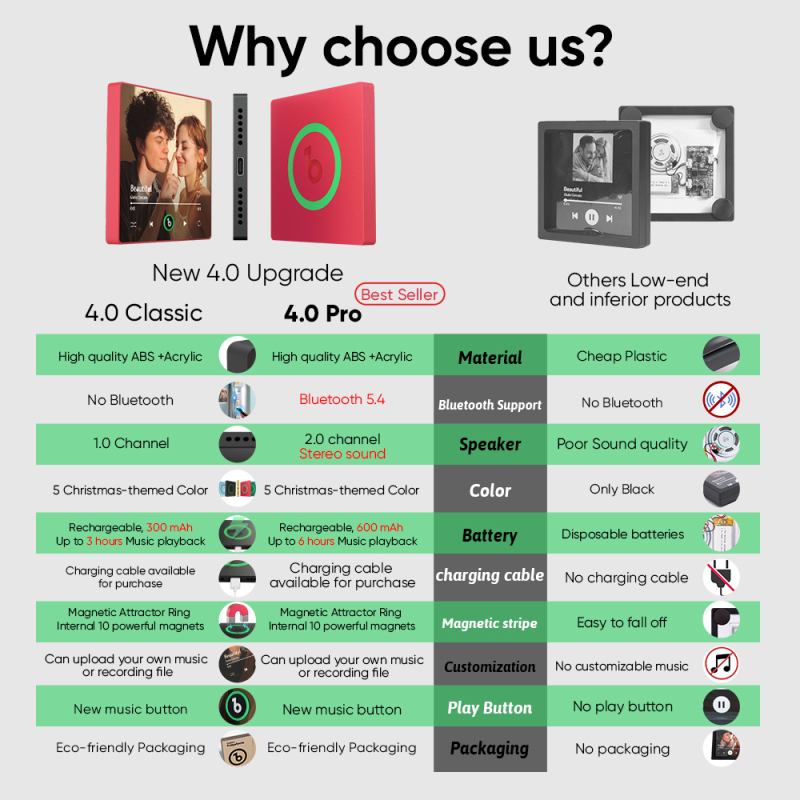 New 4.0 Upgrade Custom Music Fridge Magnet Colorful Frame Album Fridge Magnet Can Play Songs Gift for Couple Can Upload Your Music