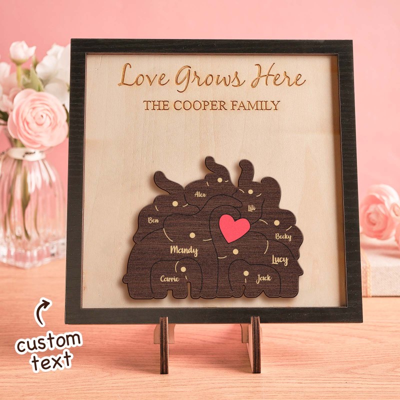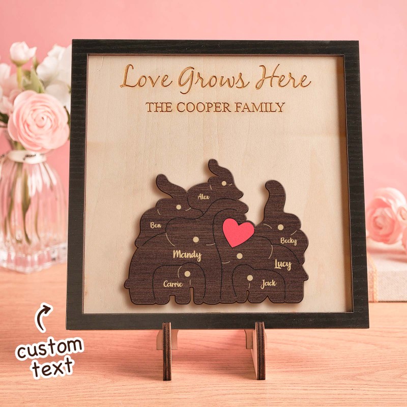 Custom Name Elephant Family Puzzle Wooden Frame Personalised Wooden Home Decorations Motther's Day Gift