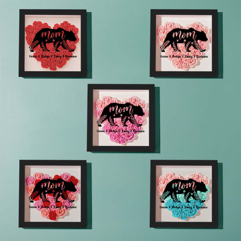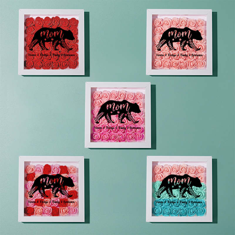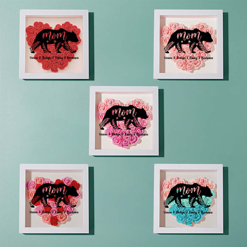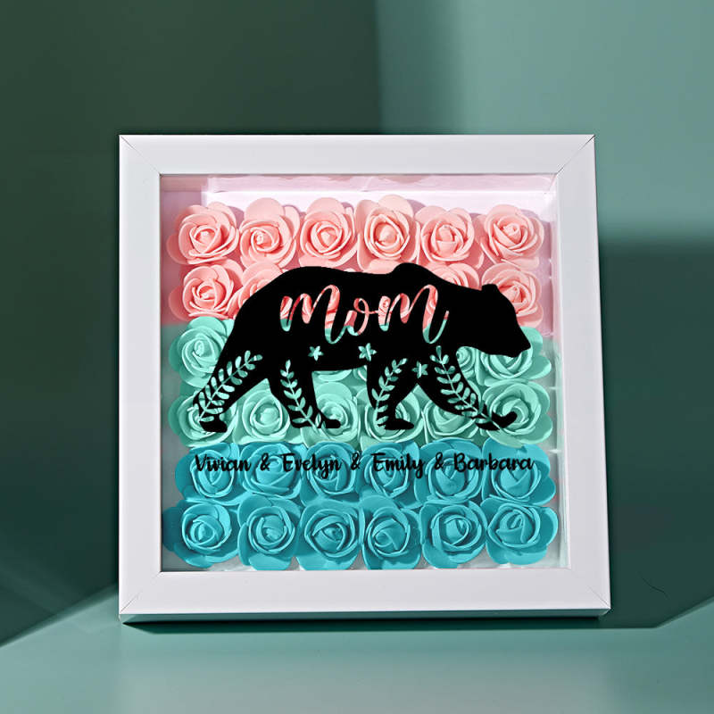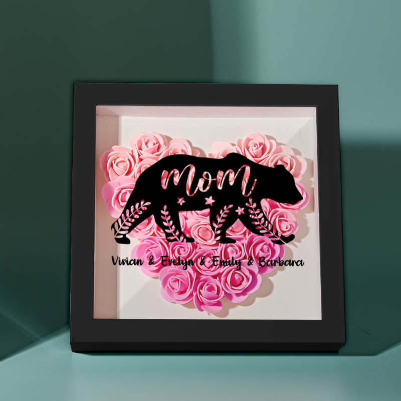 Custom Name Flower Shadow Box Personalised Bear Flower Shadowbox Frame Mother's Day Gift