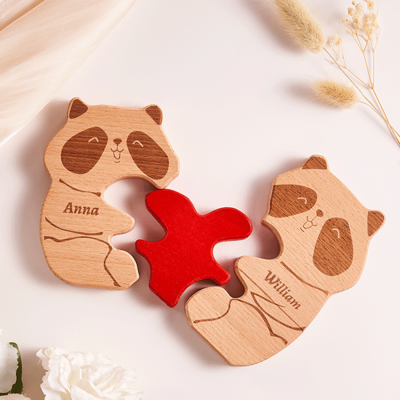 Custom Name Wooden Panda Couple Heart Blocks Valentine's Day Gifts