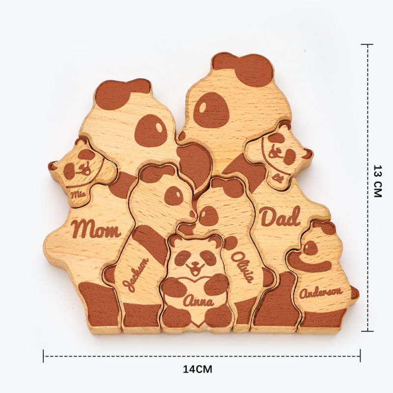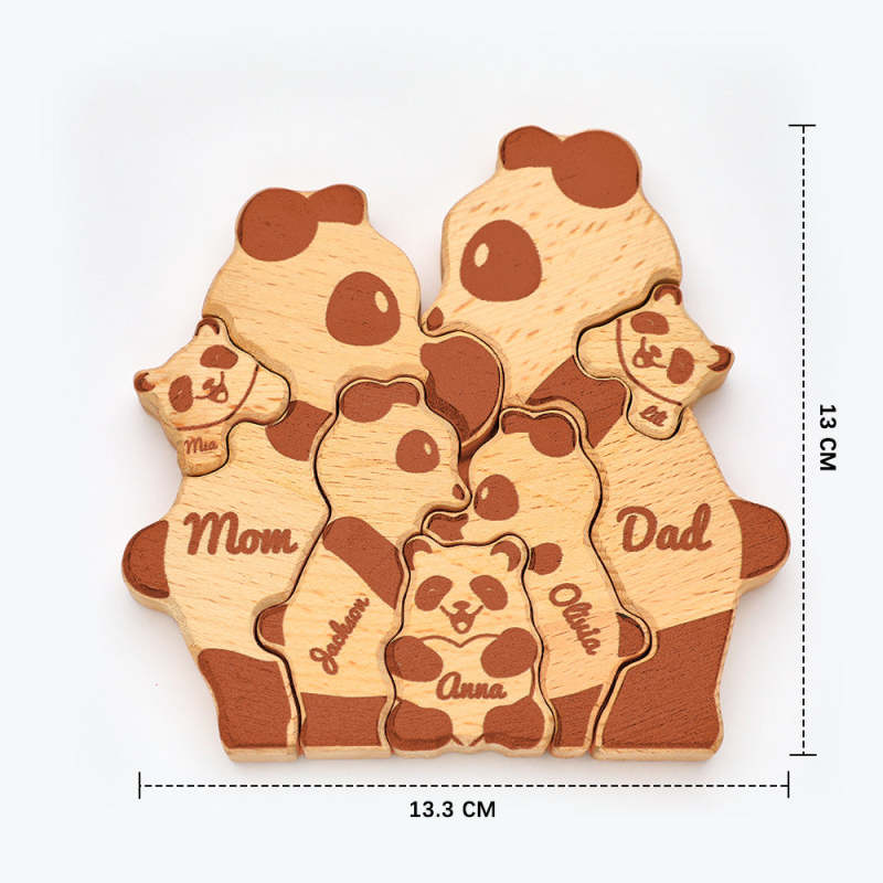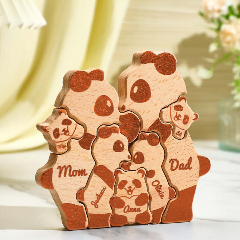 Custom Names Wooden Pandas Family Block Puzzle Home Decor Gifts