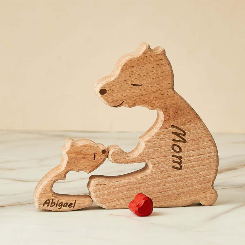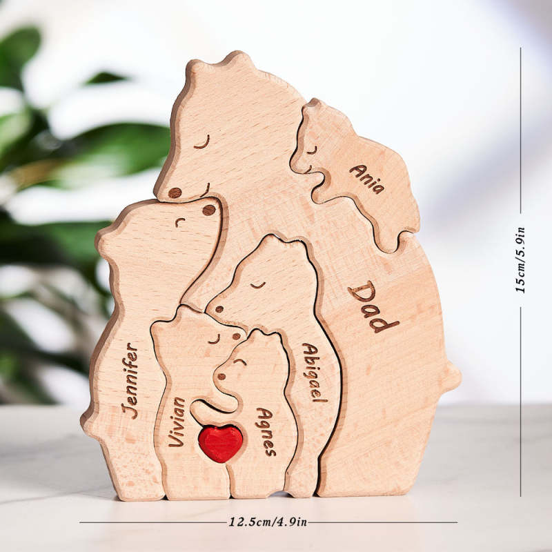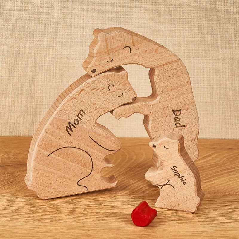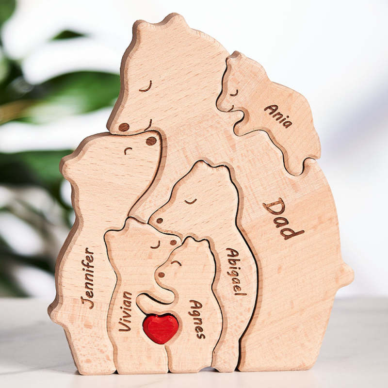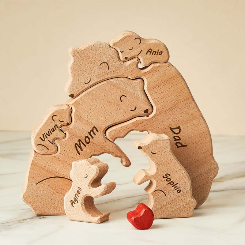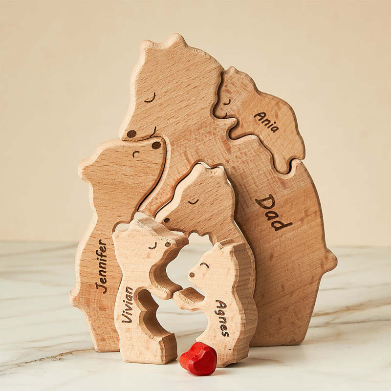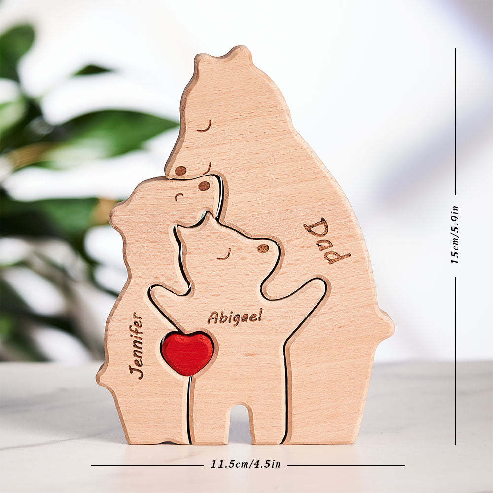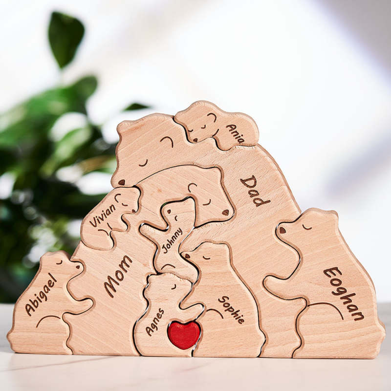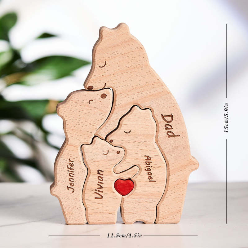 Custom Names Wooden Single Parent Bears Family Block Puzzle Home Decor Gifts