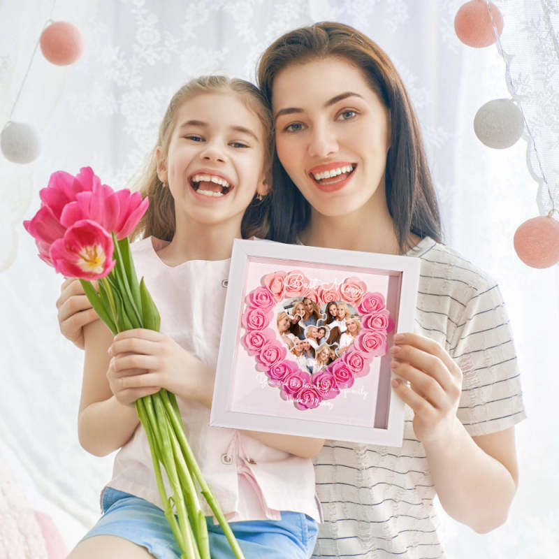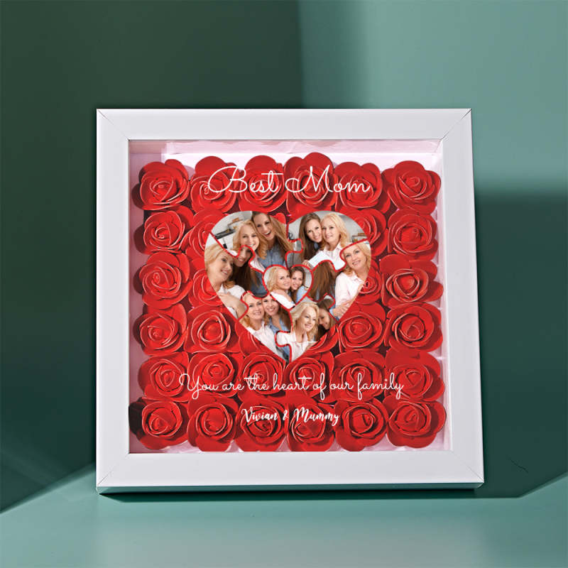 Custom Photo Puzzle Flower Shadow Box Personalised Flower Shadowbox Frame Mother's Day Gift