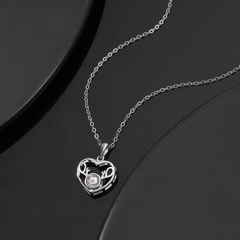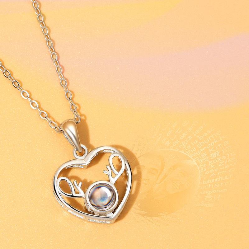 Custom Projection 100 Languages Says I Love You Heart Photo Engraved Necklace Silver
