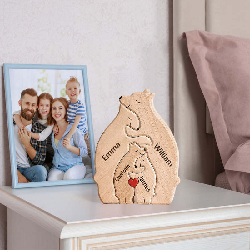 Custom Wooden Bears Family Customized Names Puzzle Home Decor Christmas Gifts