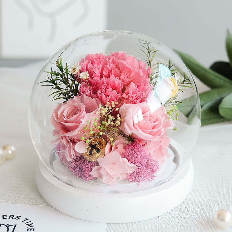 Gift For Mum Preserved Flower Glass Cover Carnation Real Flower Mother's Day Gift Home Decor - Blue