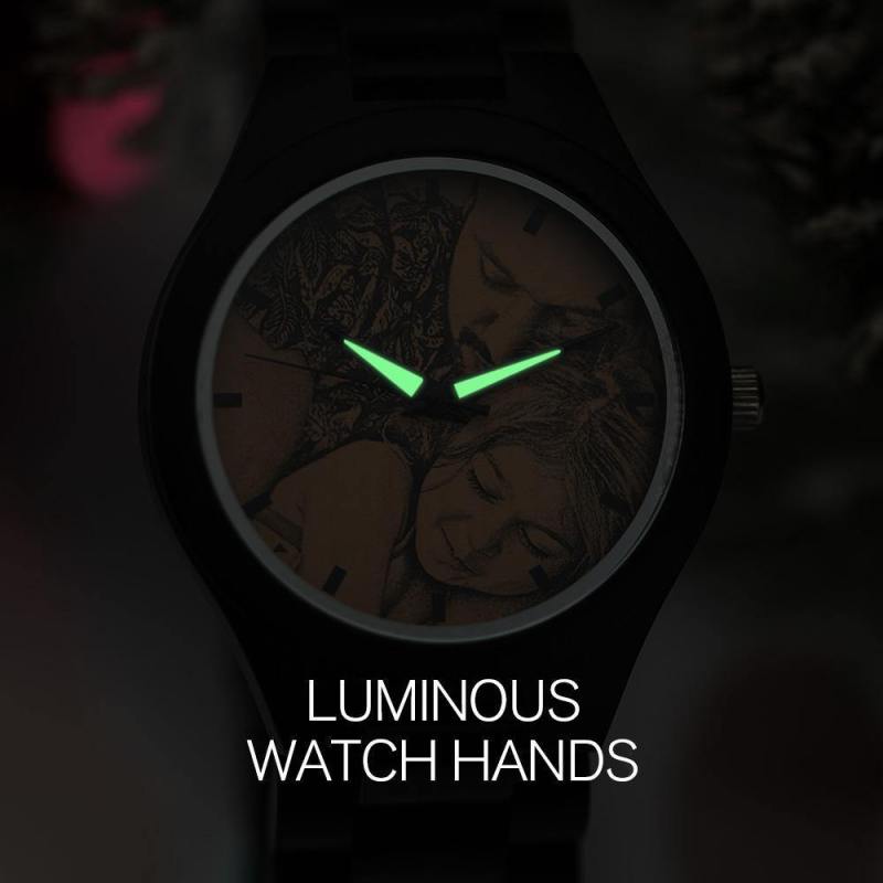 For Dad Men's Engraved Wooden Photo Watch All Black Ebony 45mm