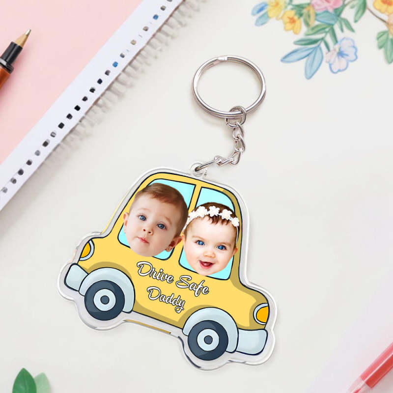 Personalised Face Acrylic Keychain Drive Safe Daddy Father's Day Gifts