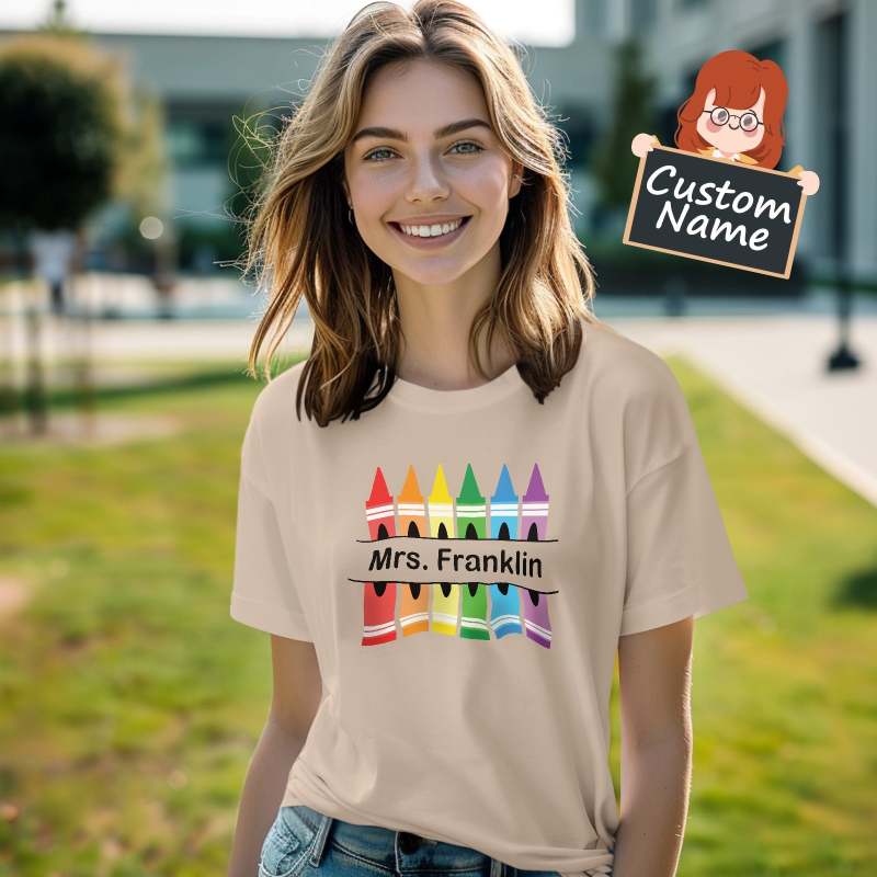 Personalized Back To School Crayon T-Shirt Teacher Custom Name Shirt Gifts