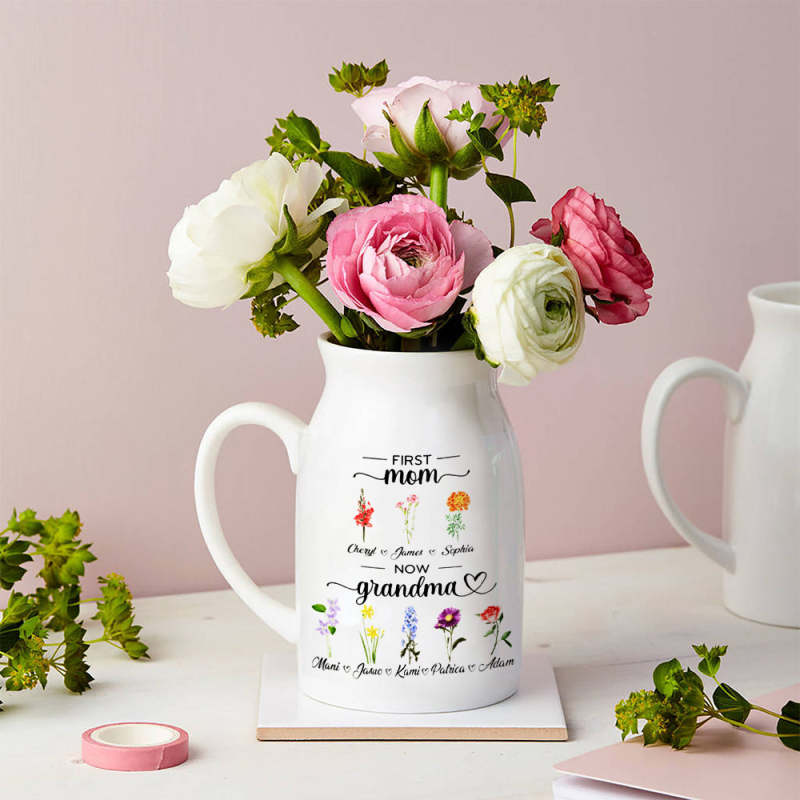 Personalised First Mum Now Grandma Flowers Vase Birth Month Flowers Gift for Grandma