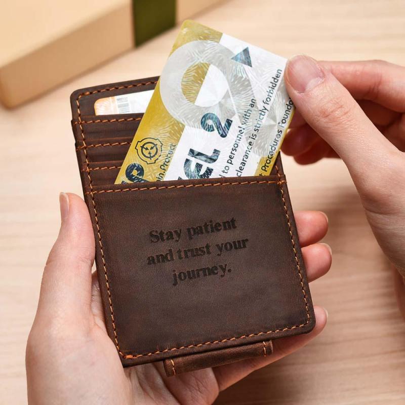 Personalised Name Leather Wallet Magnetic Money Clip for Him
