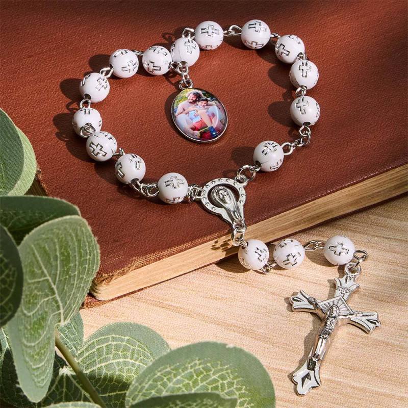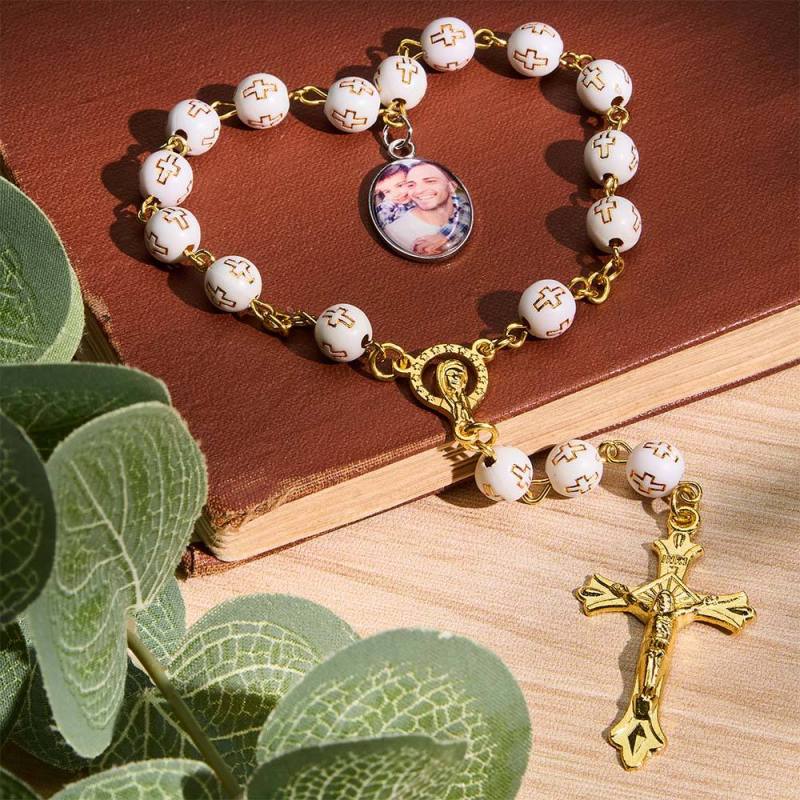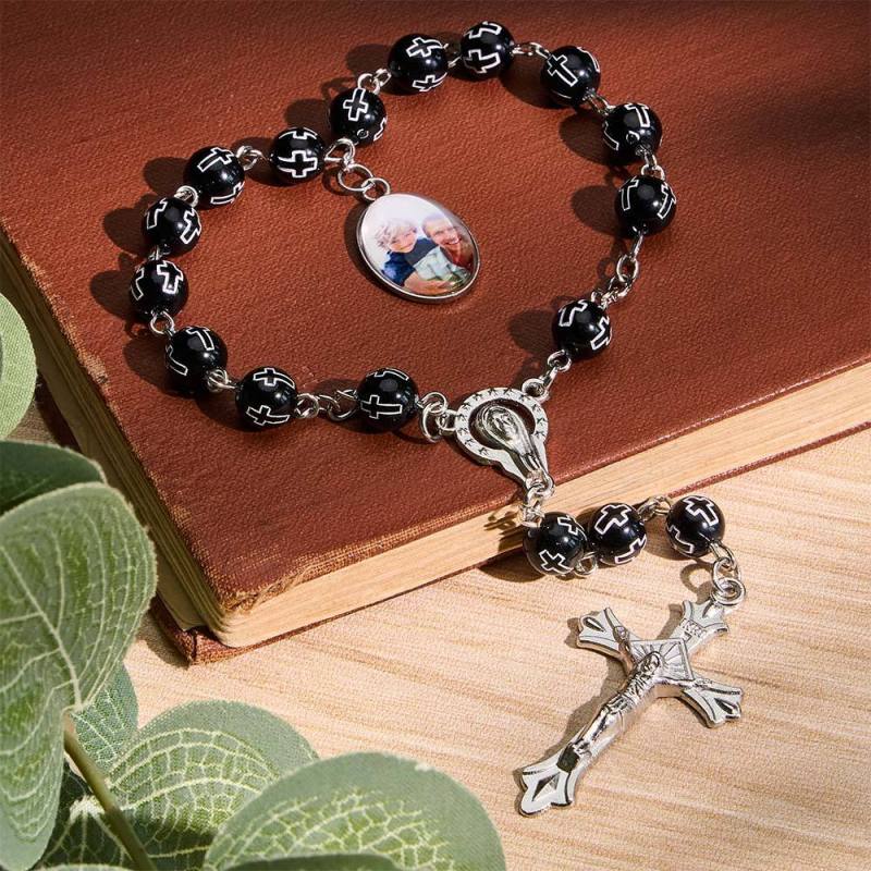 Personalised Photo Rosary Beads Cross Bracelet Custom Memorial Gifts Prayer Sentimental Gifts