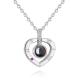 Personalised Photo With 100 Languages Says I Love You Projection Necklace Heart Silver