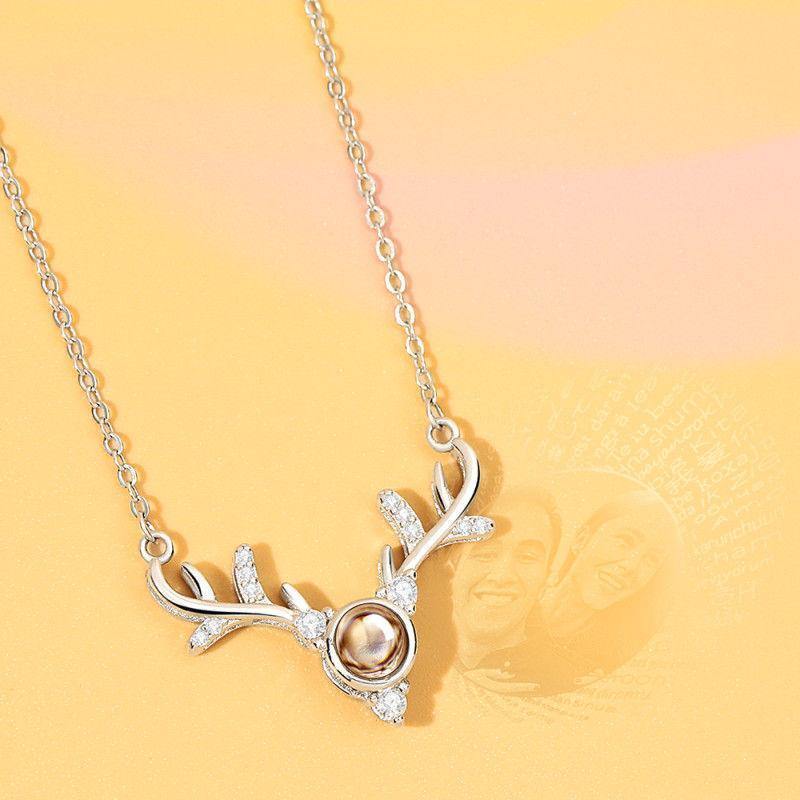 Personalised Projection 100 Languages Says I Love You Photo Engraved Necklace Silver