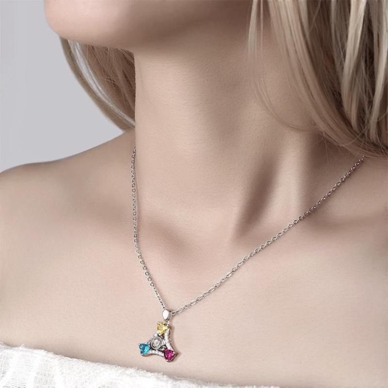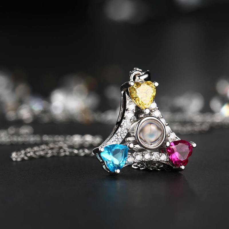 Personalised Projection Sector Three Colors Crystal Photo Necklace - Silver