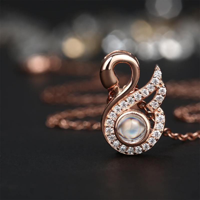 Personalised Projection Swan Crystal Photo Necklace - Rose Gold