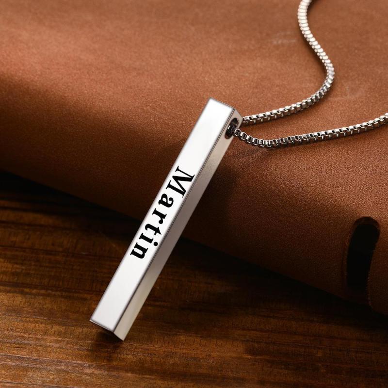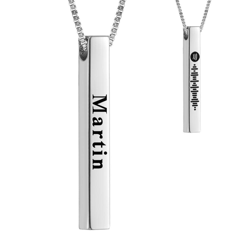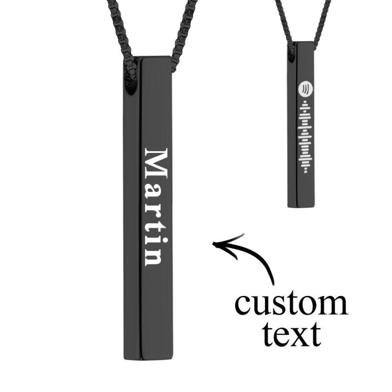 Spotify Code Music Necklace Custom Name 3D Engraved Vertical Bar Necklace Stainless Steel