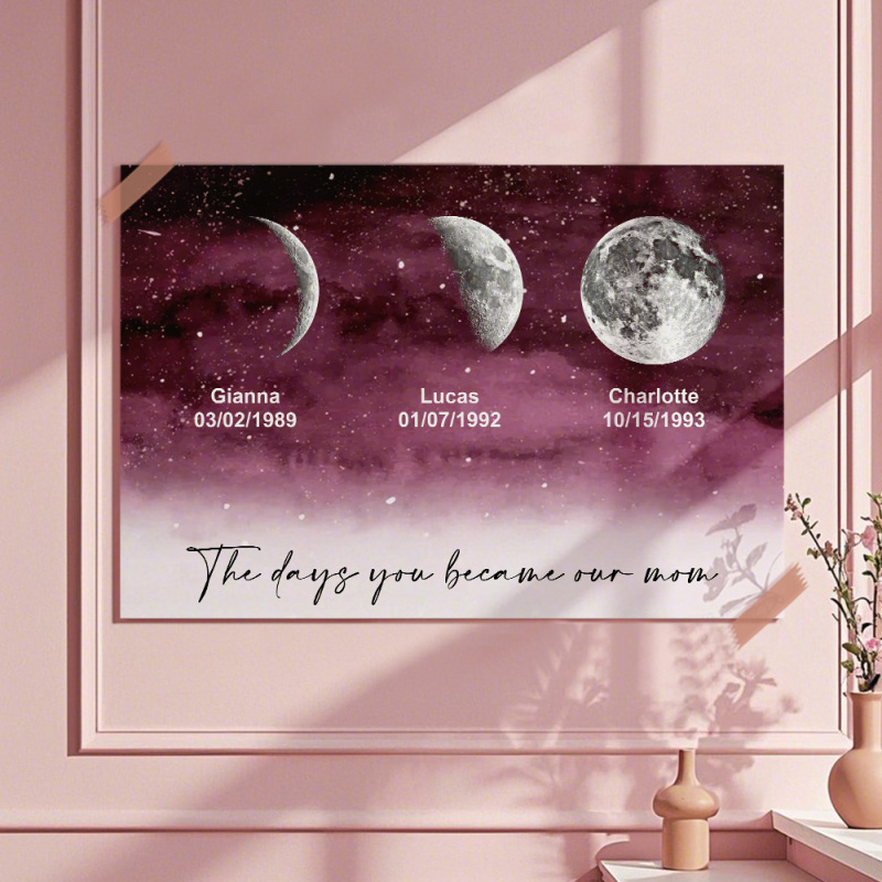 Starry Night The Day You Became Mom Birth Moon Phase Personalised Poster, A Heartfelt Gift for Mom's Birthday, Mother's Day, or Just Because